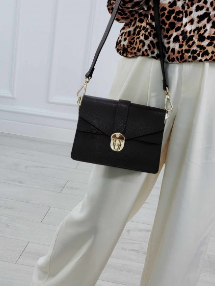 Wygodne paski sprawiają, że torebka dobrze leży na ramieniu, a złote okucia dodają jej klasy. Kieszeń z przodu to praktyczny akcent – idealna na telefon czy kartę miejską.