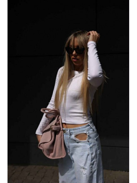 Torebka o prostokątnym kształcie, wykonana z włoskiej skóry naturalnej zamszowej, to doskonały wybór niezależnie od sezonu. Model z rączką. Posiada tez odpinany pasek z możliwością regulacji długości. Model ten wyróżnia się ponadczasowym designem. Wewnątrz znajduje się kieszonka na suwak i otwarta. Produkt włoskiej marki klasy Premium. Doskonale wykonana, z dbałością o detale. To ponadczasowy model, który pozostanie z Wami na długie lata. Torebka w jasnym ocieniu pudrowego różu.