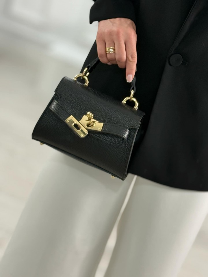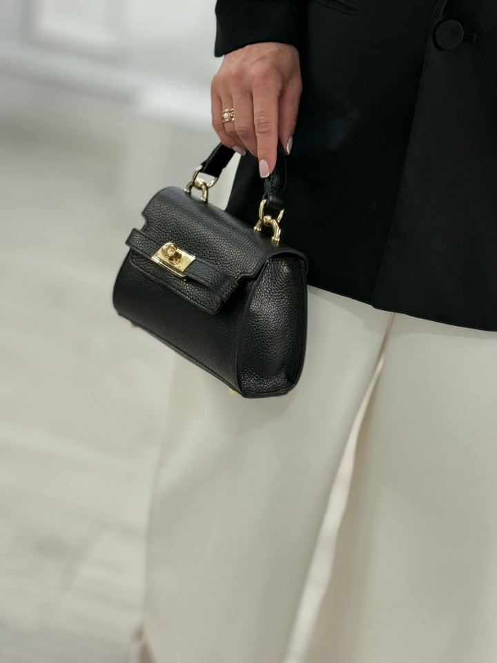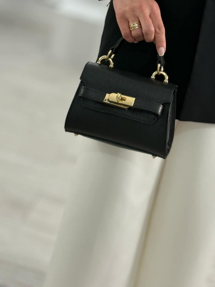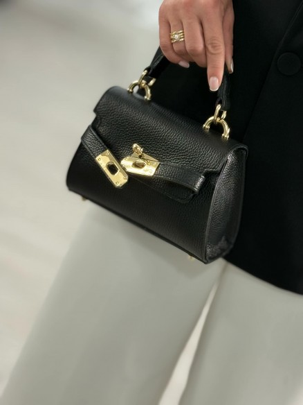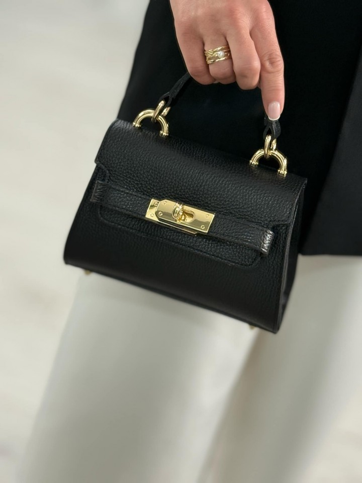 Niewielka torebka wykonana z włokiej skóry naturalnej, to doskonały wybór i wiele możliwosci. Model z rączką. Posiada odpinany, regulowany pasek. Bez problemu zmieści się w niej telefon, klucze i drobne kosmetyki. Model ten wyróżnia się ponadczasowym designem. Wewnątrz znajduje się kieszonka. Produkt włoskiej marki klasy Premium. Doskonale wykonana, z dbałością o detale. To ponadczasowy model, który pozostanie z Wami na długie lata. Torebka w kolorze czarnym. Model dostępny w kilku wariantach kolorstycznych.