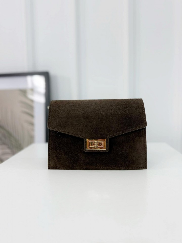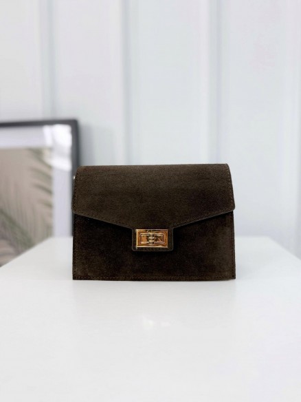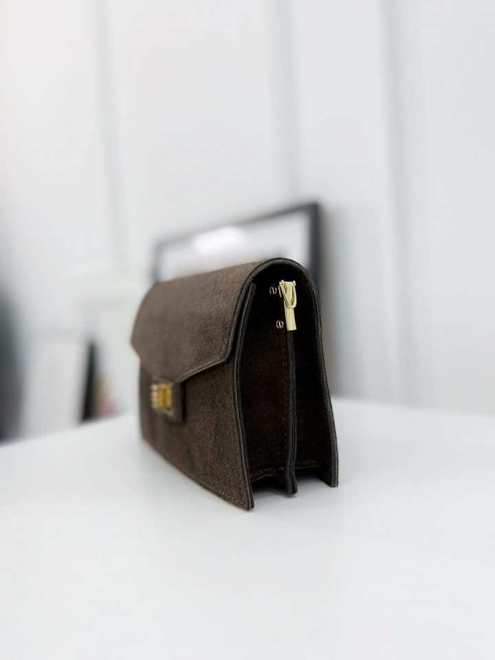 Torebka Steisi to doskonała propozycja dla kobiet lubiących praktyczne, ale również proste rozwiązania. Model z regulowanym, odpinanym paskiem. Posiada zapięcie na bigiel, natomiast komora jest otwarta. Wewnątrz kieszonka na suwak. Modna i stylowa torebka zdecydowanie wyróżni się wśród innych. Z przodu klasyczna, prosta klapa. Torebka dostępna jest w wielu wariantach kolorystycznych. Wykonana z włoskiej, zamszowej skóry naturalnej wysokiej jakości. Projekt włoskiej marki. Torebka w kolorze czekoladowego brązu.