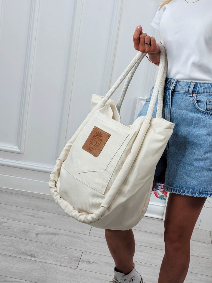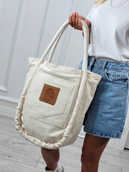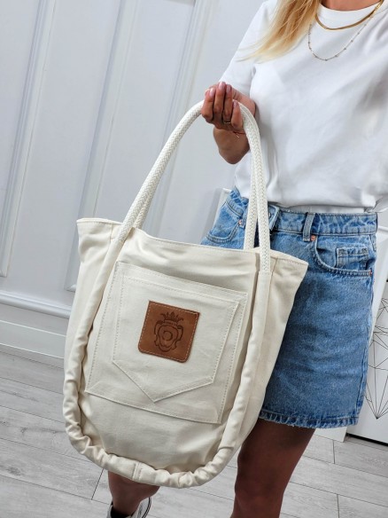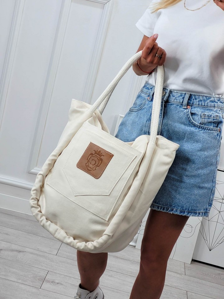 Stylowa, zgrabna torba z materiału nada twoim stylizacjom szyku. Wygląda niezwykle oryginalnie i stylowo. To połączenie elegancji i nowoczesności. Bardzo staranie wykonana z wysokiej jakości materiałów, z dbałością o najmniejsze szczegóły. Produkt klasy premium marki Cassi. Idealna do noszenia w sportowym jak i bardziej eleganckim stylu. Torba posiada dwie wewnętrzne kieszenie, na suwak i otwartą. Całość wykończona podszewką. Jej ponadczasowy fason sprawi, że pozostanie w twojej szafie na wiele lat.