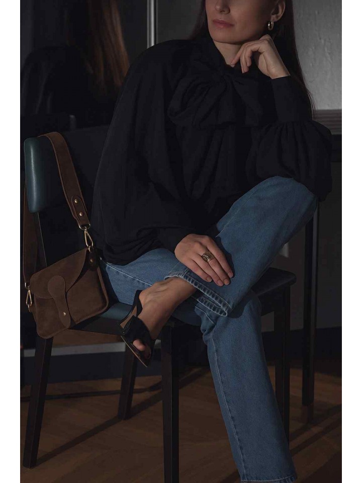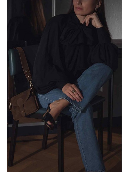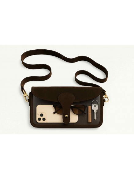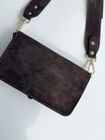Mała Torebka Bella Skóra Naturalna Zamszowa Czekoladowy Brąz