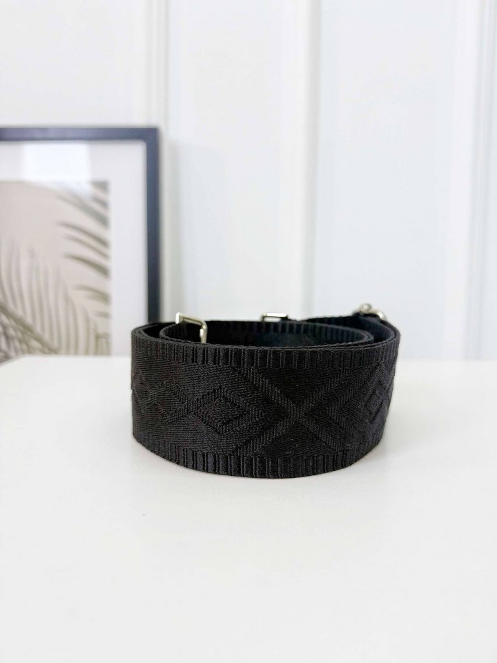 Szeroki pasek wykonany z bardzo dobrej jakości materiału. Pasek z możliwością regulacji długości. Okucia w kolorze srebrnym.