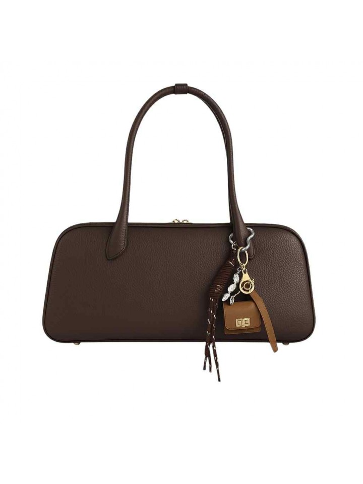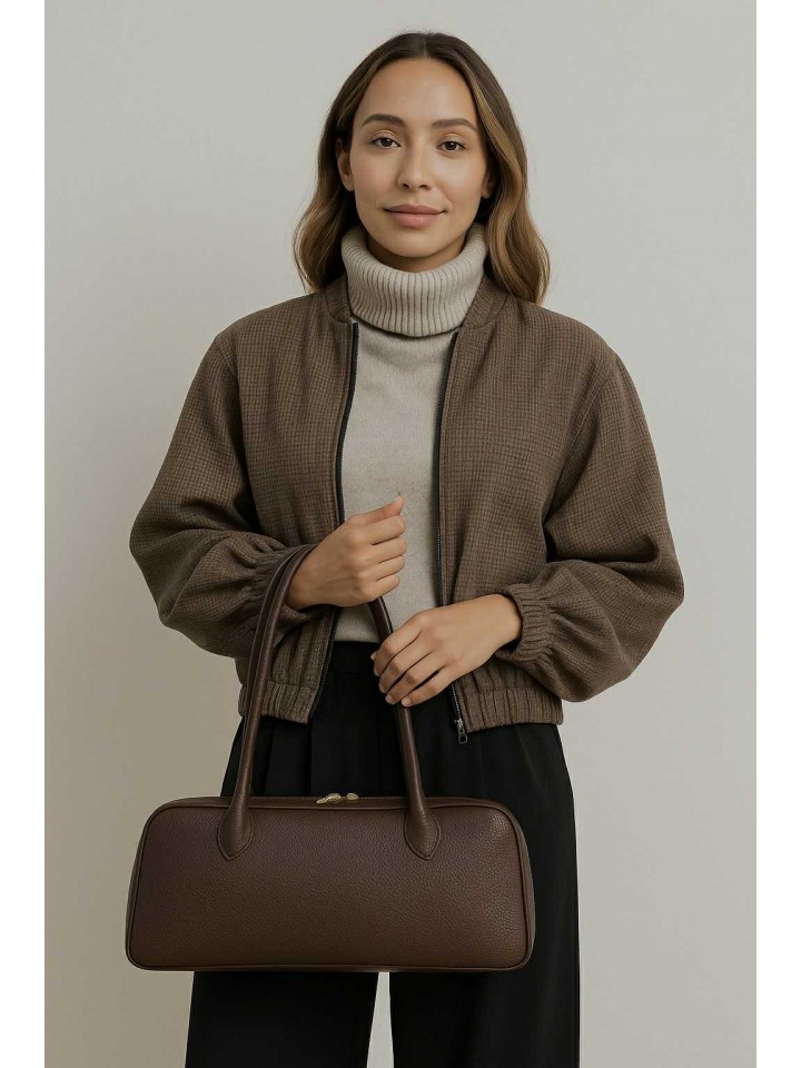 Torebka Laura w odcieniu gorzkiej czekolady to doskonały wybór dla fanek klasycznej elegancji w nowoczesnym wydaniu. Jej wydłużony kształt nawiązuje do stylu lat 90., a szlachetna skóra naturalna nadaje całości wyjątkowego charakteru. Prosty fason sprawia, że torebka świetnie komponuje się zarówno z garniturem, jak i z codzienną stylizacją – od swobodnych jeansów po letnie sukienki.
