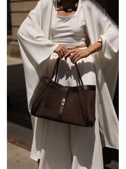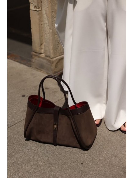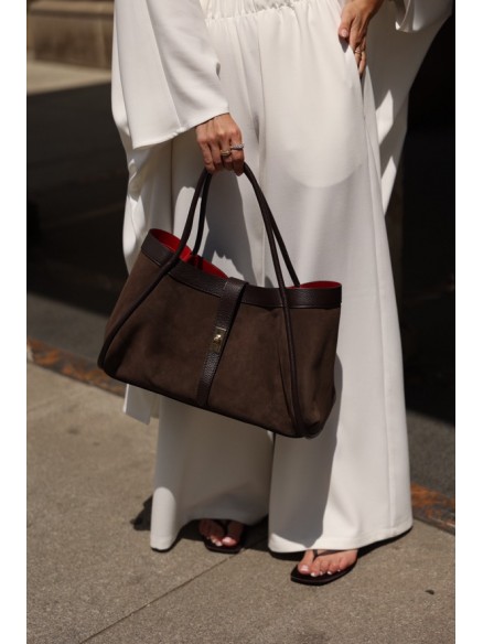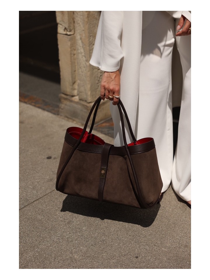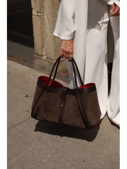 Samanta w odcieniu brązu to elegancka i praktyczna torebka, która idealnie dopełni każdą stylizację. Wykonana z miękkiej, wysokogatunkowej skóry naturalnej, zachwyca minimalistyczną formą i subtelną kolorystyką. Wnętrze torebki wykończone kontrastującą czerwienią dodaje jej unikalnego charakteru, a dołączona kosmetyczka w tym samym kolorze pozwala utrzymać porządek w środku. Złote detale dopełniają całość, nadając torebce szykownego wyglądu. A długi, regulowany pasek pozwoli swobodnie zawiesić ją na ramieniu.