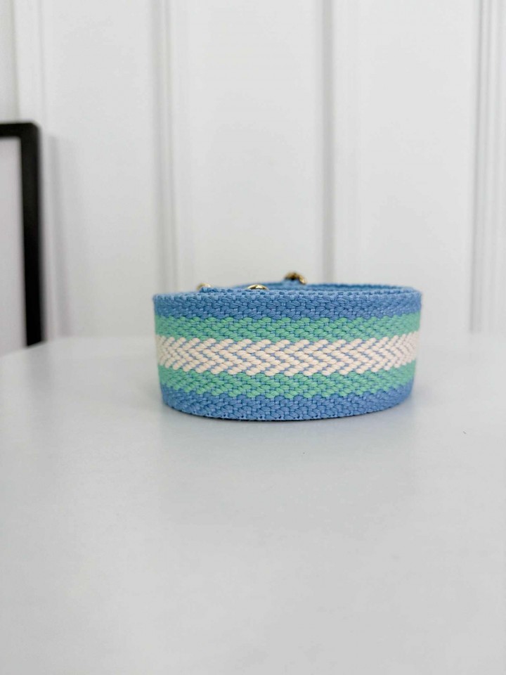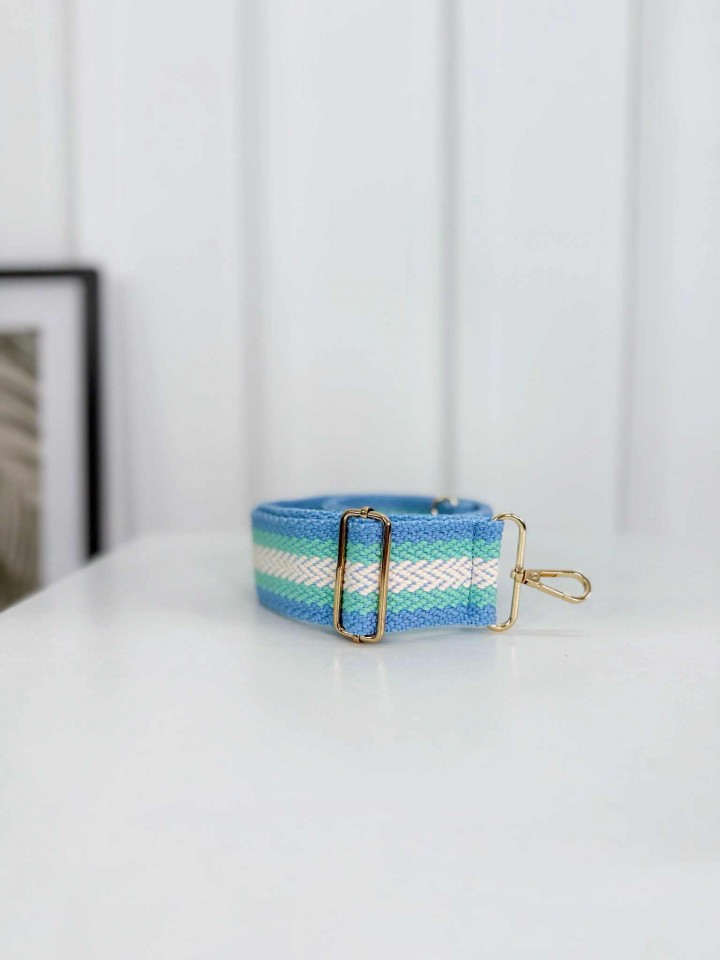Szeroki pasek wykonany z bardzo dobrej jakości materiału. Pasek z możliwością regulacji długości. Okucia w kolorze złotym.