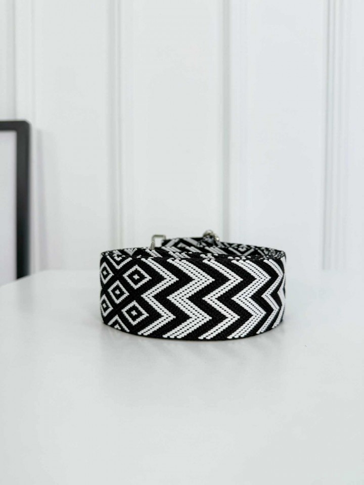 Szeroki pasek wykonany z bardzo dobrej jakości materiału. Pasek z możliwością regulacji długości. Okucia w kolorze srebnym.