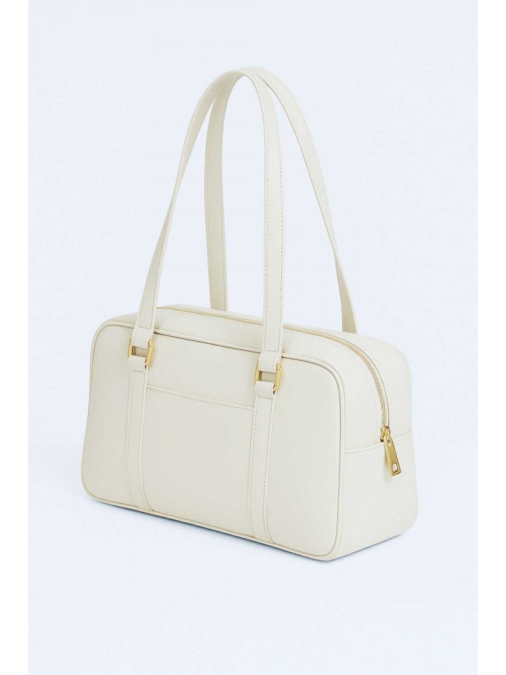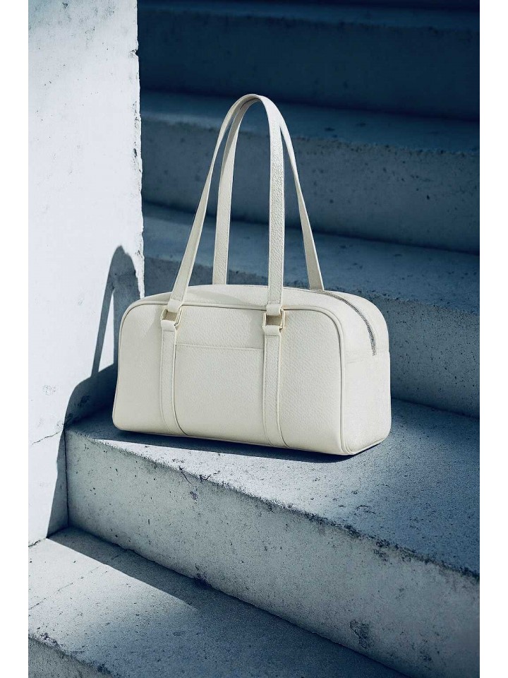 Ta torebka to idealny przykład tego, jak połączyć ponadczasową formę z nowoczesnym wykończeniem. Utrzymana w śmietankowym odcieniu beżu, zachwyca wykończeniem i prostą, geometryczną sylwetką. Jej wydłużony, prostokątny kształt i miękkie zaokrąglenia nadają jej subtelny, ale zdecydowany charakter. Całość dopełniają skórzane paski z drobnymi, złotymi detalami — czyli klasyka w nowoczesnym wydaniu.