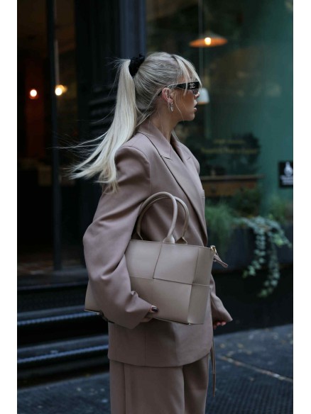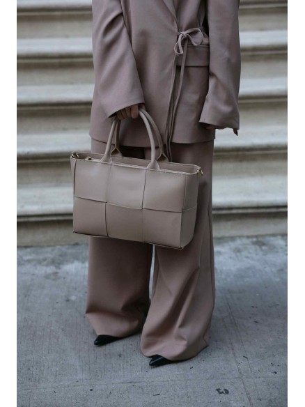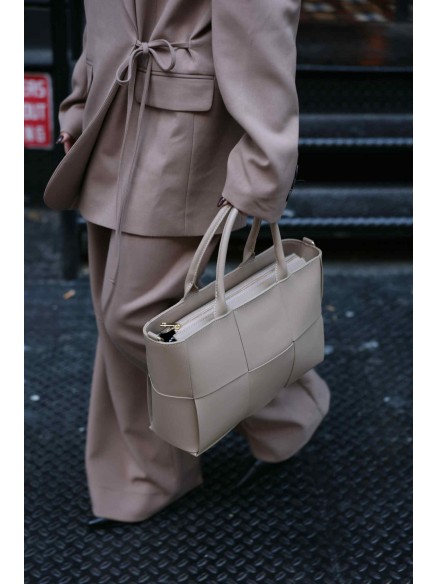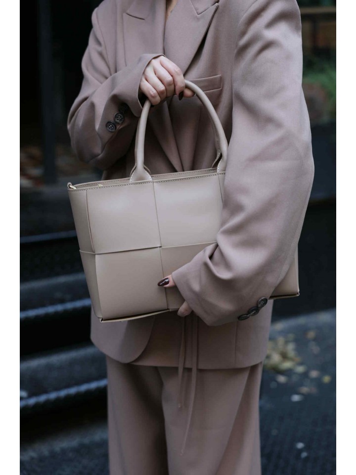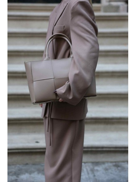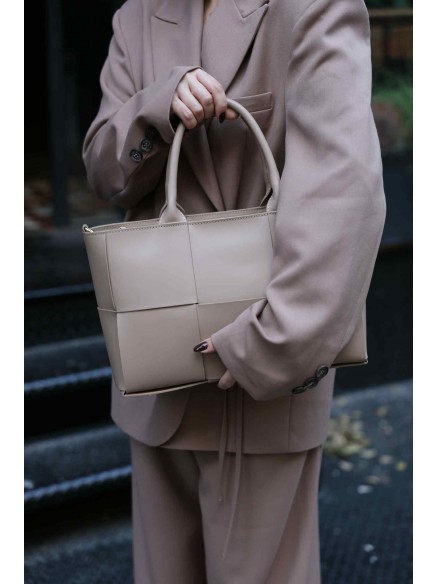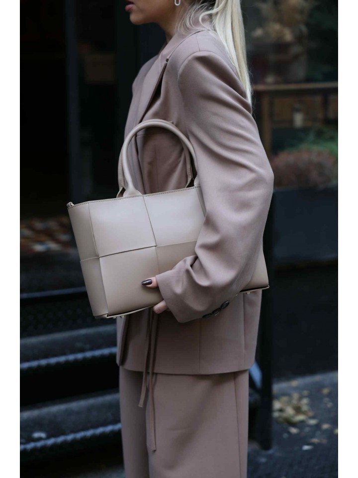 Ta wyjątkowa torebka to połączenie nowoczesnej formy i tradycyjnego rzemiosła. Ręcznie wykonana we Włoszech z najwyższej jakości gładkiej skóry licowej, zachwyca minimalistycznym designem i precyzją wykonania. Delikatnie połyskująca, miękka w dotyku skóra nadaje jej wyjątkowego charakteru, a geometryczna struktura paneli podkreśla unikatowy styl.
