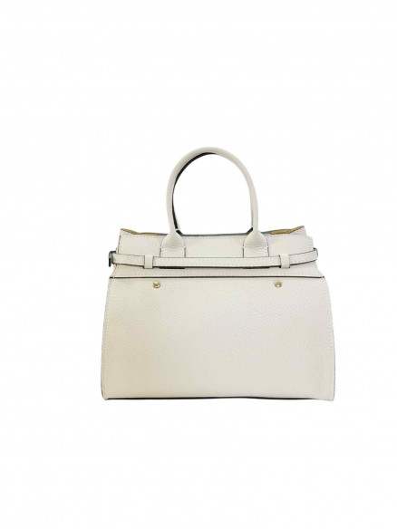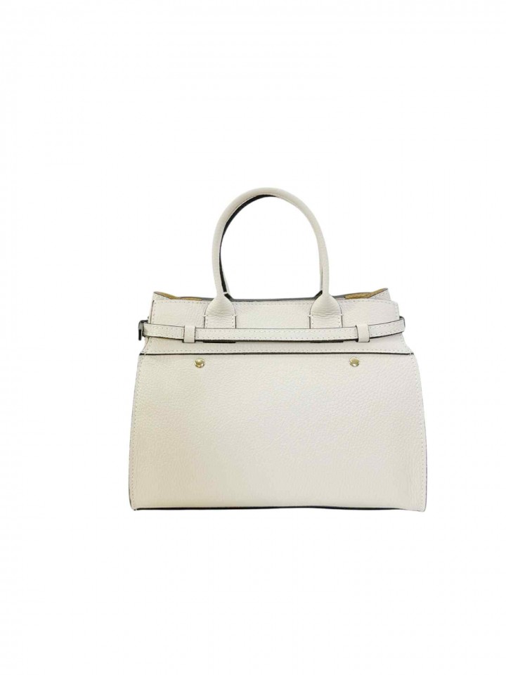 Podwójne, solidne uchwyty sprawiają, że doskonale leży w dłoni, ale bez problemu sprawdzi się również jako torebka do noszenia na przedramieniu – idealna zarówno do biura, jak i na spotkanie w mieście. Minimalistyczna forma idzie w parze z dbałością o detale – pasek oplatający torebkę subtelnie podkreśla jej sylwetkę, nadając jej nowoczesny twist.
