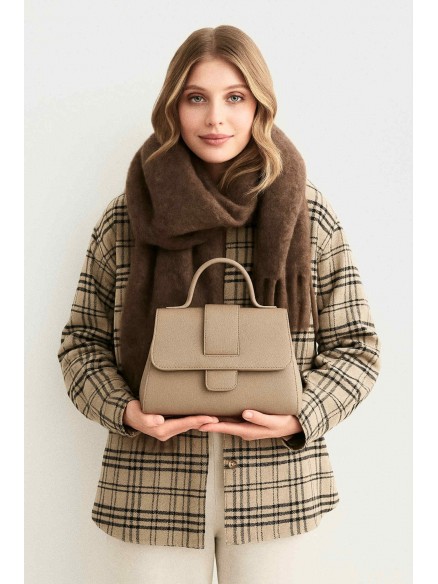 Model ten wyposażony jest w sztywną konstrukcję, co sprawia, że torebka zachowuje swój kształt nawet przy codziennym użytkowaniu. Wnętrze zostało starannie wykończone jasną podszewką z miękkiego materiału, co kontrastuje z ciemną skórą i dodaje całości świeżości. Zapięcie na magnes umożliwia szybki dostęp do zawartości, a dyskretna metalowa klamra zapewnia bezpieczeństwo i nowoczesny akcent.
