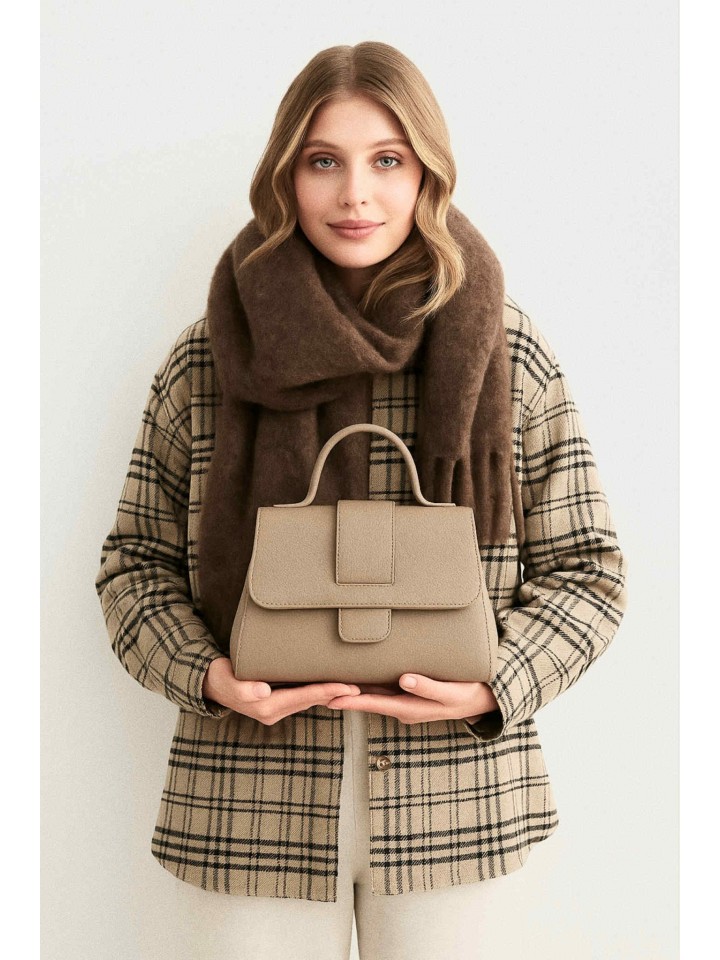 Torebka posiada uchwyt do noszenia w dłoni oraz metalowe uchwyty do przypięcia paska, dzięki czemu można ją nosić również na ramię lub przez ciało – co czyni ją idealnym wyborem dla współczesnej kobiety ceniącej zarówno styl, jak i funkcjonalność. To idealny dodatek do miejskich, smart casualowych stylizacji, jak również jako akcent elegancji do jeansów i białej koszuli.