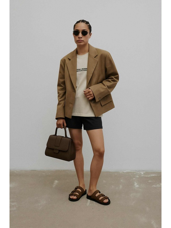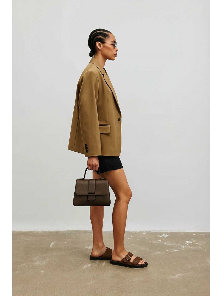 Torebka posiada uchwyt do noszenia w dłoni oraz metalowe uchwyty do przypięcia paska, dzięki czemu można ją nosić również na ramię lub przez ciało – co czyni ją idealnym wyborem dla współczesnej kobiety ceniącej zarówno styl, jak i funkcjonalność. To idealny dodatek do miejskich, smart casualowych stylizacji, jak również jako akcent elegancji do jeansów i białej koszuli.