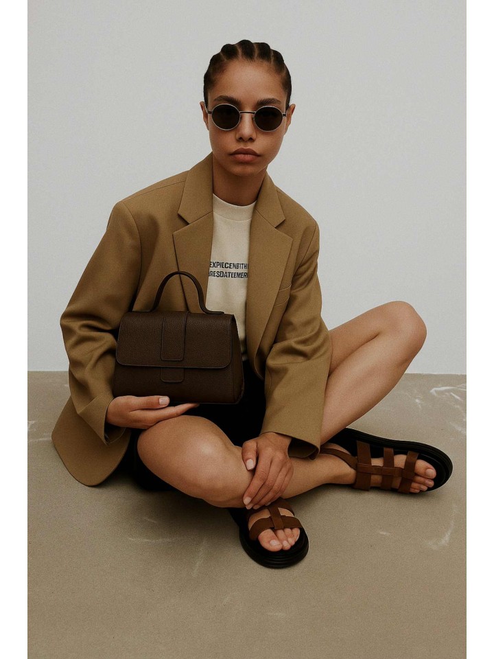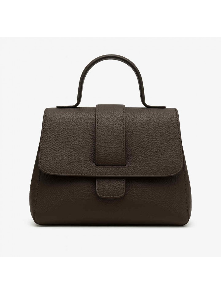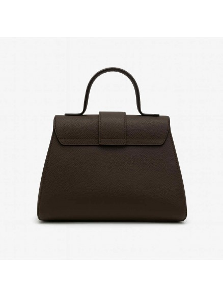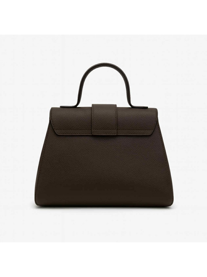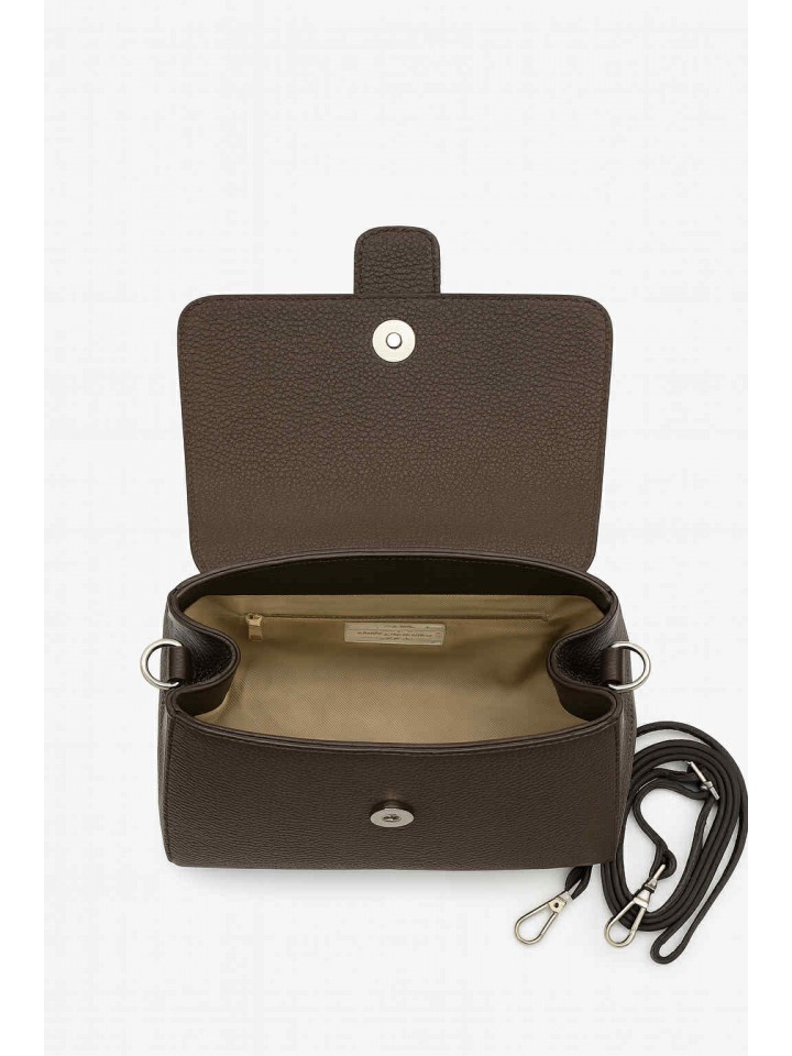 Model ten wyposażony jest w sztywną konstrukcję, co sprawia, że torebka zachowuje swój kształt nawet przy codziennym użytkowaniu. Wnętrze zostało starannie wykończone jasną podszewką z miękkiego materiału, co kontrastuje z ciemną skórą i dodaje całości świeżości. Zapięcie na magnes umożliwia szybki dostęp do zawartości, a dyskretna metalowa klamra zapewnia bezpieczeństwo i nowoczesny akcent.