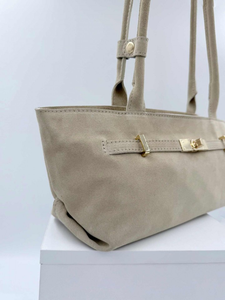 Podkreśl swój styl z klasą – torebka INGA to esencja minimalistycznej elegancji i ponadczasowego szyku. Wykonana z najwyższej jakości naturalnej skóry zamszowej w delikatnym, beżowym odcieniu, doskonale wpisuje się w garderobę nowoczesnej kobiety ceniącej styl, jakość i funkcjonalność.
