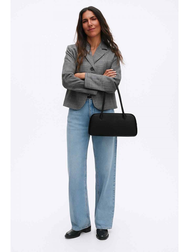 Torebka Laura w kolorze czarnym to doskonały wybór dla fanek klasycznej elegancji w nowoczesnym wydaniu. Jej wydłużony kształt nawiązuje do stylu lat 90., a szlachetna skóra naturalna nadaje całości wyjątkowego charakteru. Prosty fason sprawia, że torebka świetnie komponuje się zarówno z garniturem, jak i z codzienną stylizacją – od swobodnych jeansów po letnie sukienki.