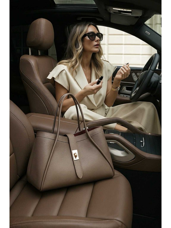 Samanta w kolorze taupe to elegancka i praktyczna torebka, która idealnie dopełni każdą stylizację. Wykonana z miękkiej, wysokogatunkowej skóry naturalnej, zachwyca minimalistyczną formą i subtelną kolorystyką. Wnętrze torebki wykończone kontrastującą czerwienią dodaje jej unikalnego charakteru, a dołączona kosmetyczka w tym samym kolorze pozwala utrzymać porządek w środku. Złote detale dopełniają całość, nadając torebce szykownego wyglądu. A długi, regulowany pasek pozwoli swobodnie zawiesić ją na ramieniu.