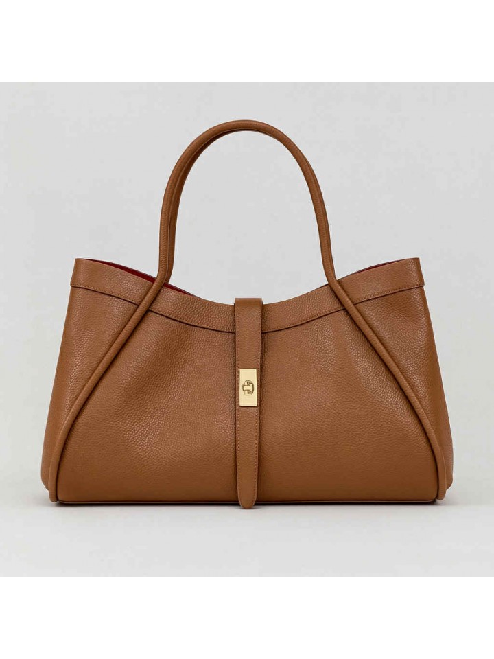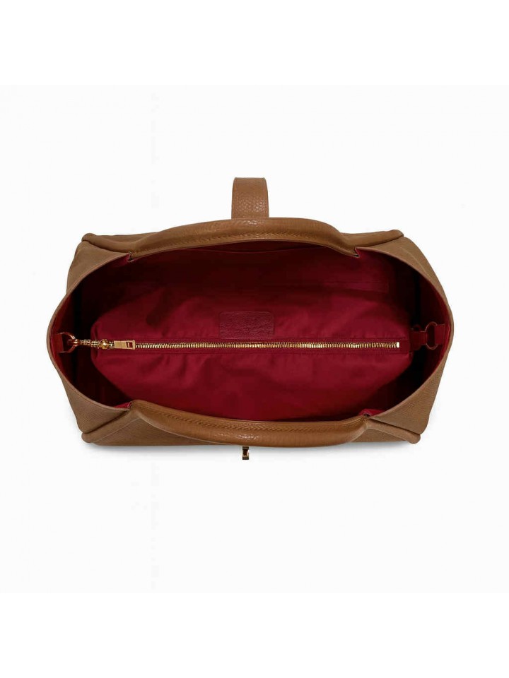 Samanta w kolorze camel to elegancka i praktyczna torebka, która idealnie dopełni każdą stylizację. Wykonana z miękkiej, wysokogatunkowej skóry naturalnej, zachwyca minimalistyczną formą i subtelną kolorystyką. Wnętrze torebki wykończone kontrastującą czerwienią dodaje jej unikalnego charakteru, a dołączona kosmetyczka w tym samym kolorze pozwala utrzymać porządek w środku. Złote detale dopełniają całość, nadając torebce szykownego wyglądu. A długi, regulowany pasek pozwoli swobodnie zawiesić ją na ramieniu.