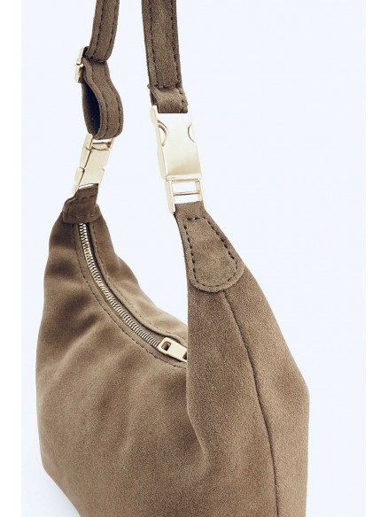 Miękka skóra naturalna zamszowa dodaje subtelnej elegancji, a złote detale przy pasku podkreślają modny charakter całości. Dzięki kompaktowym rozmiarom torebka jest lekka i poręczna, ale wystarczająco pojemna, by pomieścić wszystko, co ważne: telefon, portfel, klucze i kilka drobiazgów. A dzięki dopinanemu paskowi swobodnie zawiesisz ją na ramieniu.