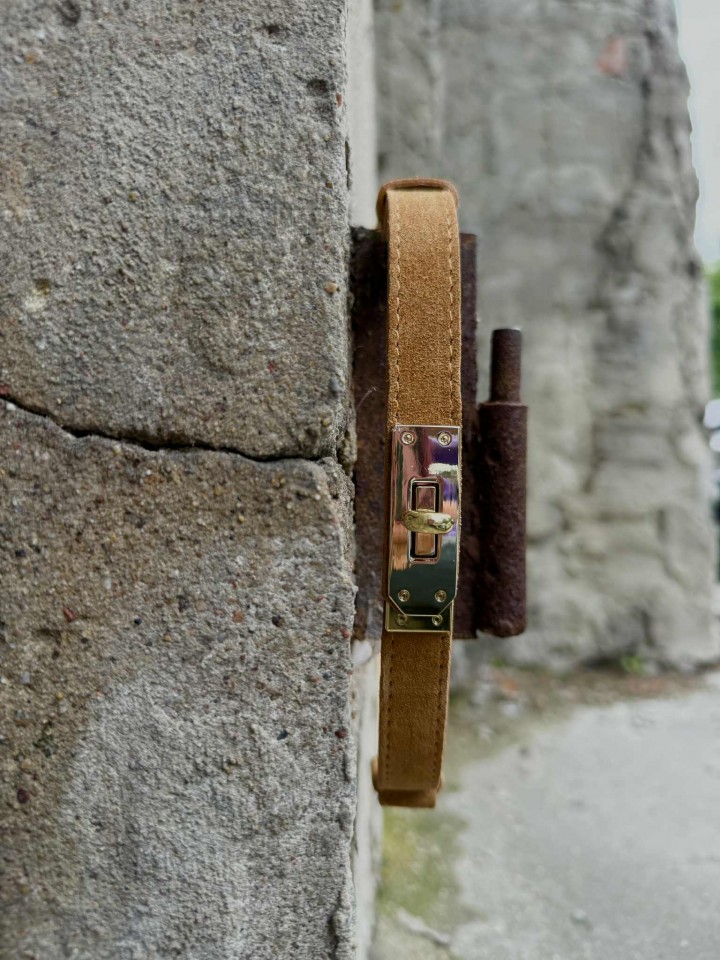 Pasek ze skóry naturalnej zamszowej ze złotą klamrą to wyjątkowy dodatek, który podkreśli każdą stylizację. Wykonany z wysokiej jakości skóry, jest zarówno trwały, jak i modny. Złota klamra dodaje elegancji, sprawiając, że pasek staje się subtelnym, ale efektownym akcentem. Dzięki regulowanej długości pasuje na osoby noszące rozmiary od XS do XL, zapewniając komfort i idealne dopasowanie.