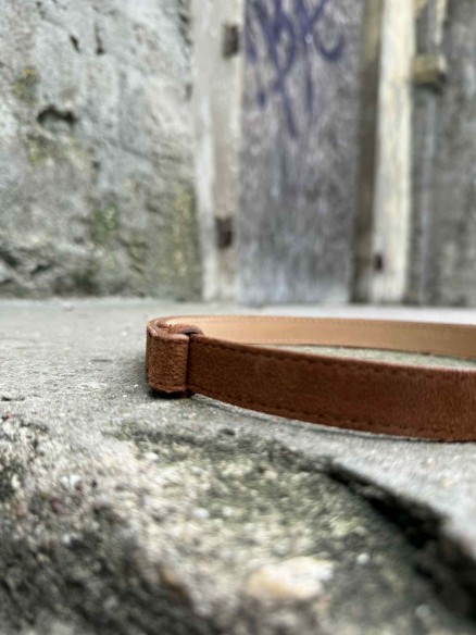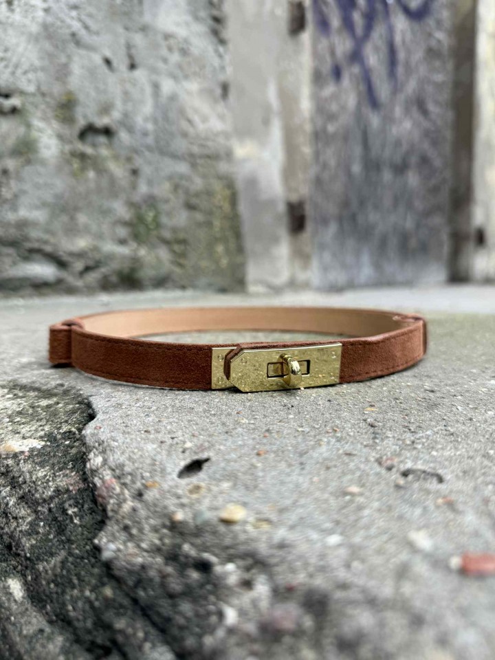 Pasek ze skóry naturalnej zamszowej ze złotą klamrą to wyjątkowy dodatek, który podkreśli każdą stylizację. Wykonany z wysokiej jakości skóry, jest zarówno trwały, jak i modny. Złota klamra dodaje elegancji, sprawiając, że pasek staje się subtelnym, ale efektownym akcentem. Dzięki regulowanej długości pasuje na osoby noszące rozmiary od XS do XL, zapewniając komfort i idealne dopasowanie.