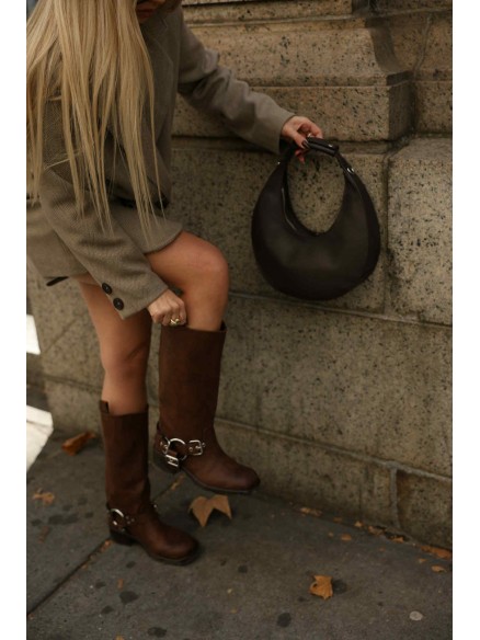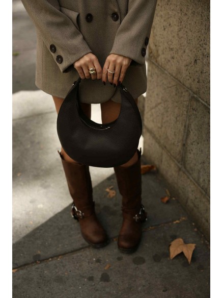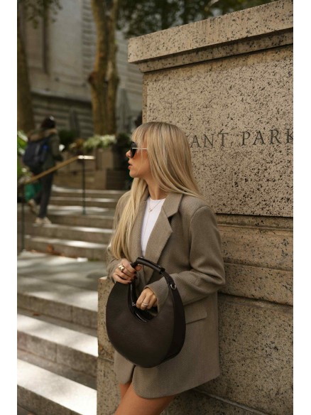 Wykonana z wysokiej jakości skóry naturalnej, w subtelnym czekoladowym odcieniu brązu, łączy w sobie minimalistyczny design i maksymalną funkcjonalność. Szlachetny kształt inspirowany architekturą, wygodny uchwyt i przemyślane wnętrze sprawiają, że świetnie odnajduje się zarówno w biurze, jak i w kawiarni po godzinach. Dodatkowy długi pasek sprawia, że swobodnie zawiesisz ją na ramieniu.