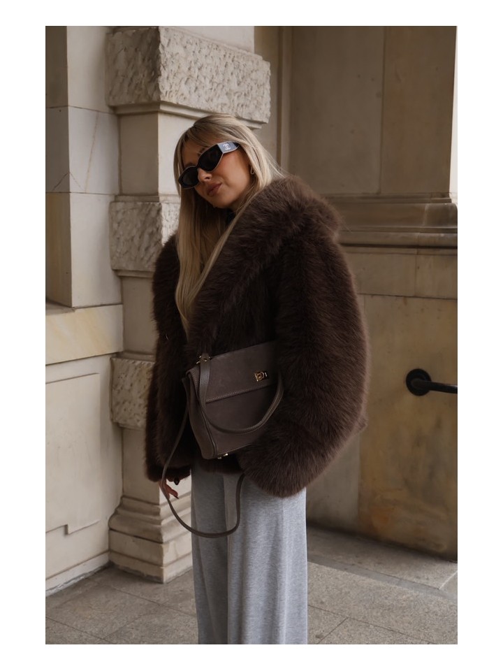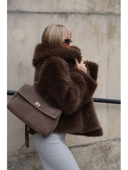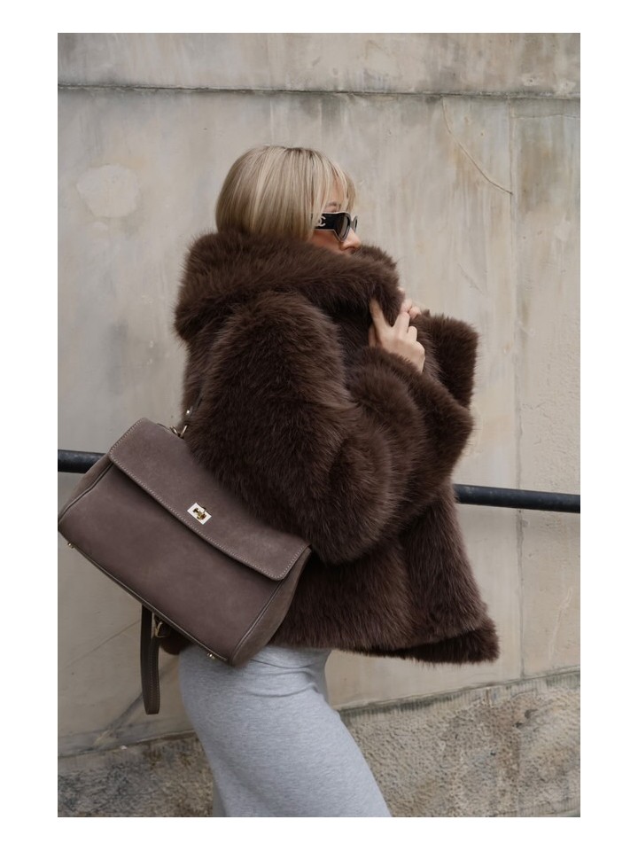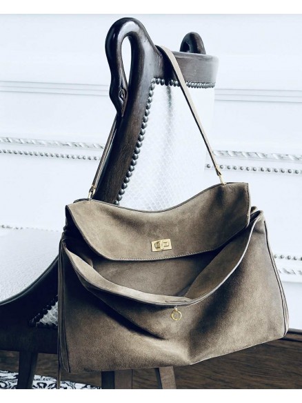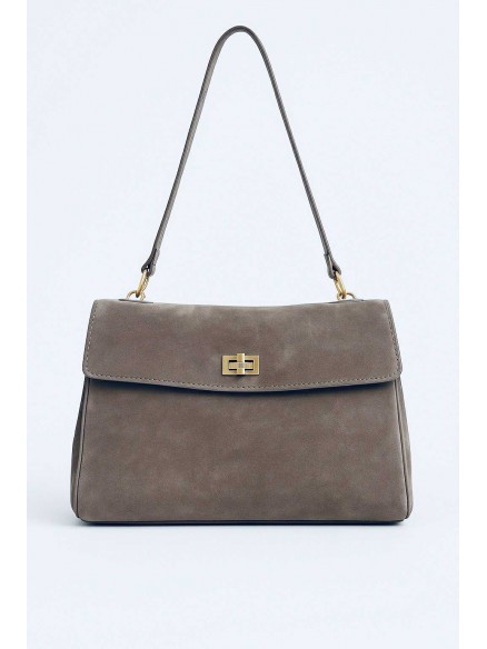 Miękka skóra zamszowa, minimalistyczna forma i detal, który robi robotę. Ta torebka łączy luz z klasą – pasuje do oversize’owej marynarki, jeansów i codziennego biegu między spotkaniami.