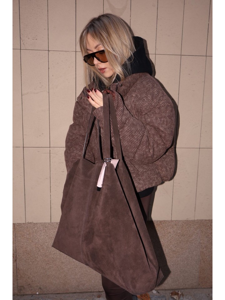 Duża włoska shopperka z miękkiej skóry zamszowej – stylowa torebka dla nowoczesnej kobiety