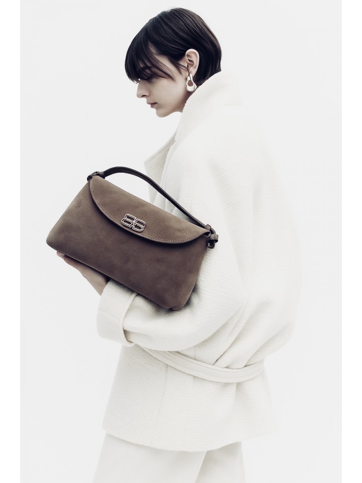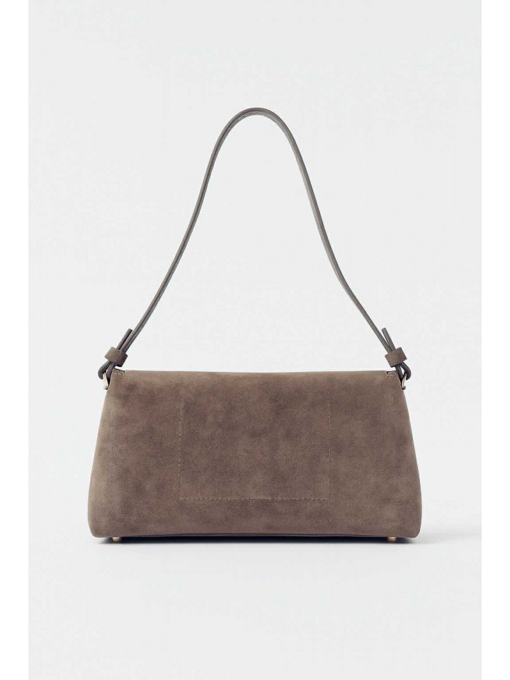 Poznaj Bari – torebkę, która łączy w sobie esencję włoskiego stylu, subtelną elegancję i ponadczasową funkcjonalność. Wykonana z miękkiej, wysokogatunkowej skóry zamszowej w głębokim odcieniu taupe, zachwyca aksamitną fakturą i szlachetnym wyglądem.