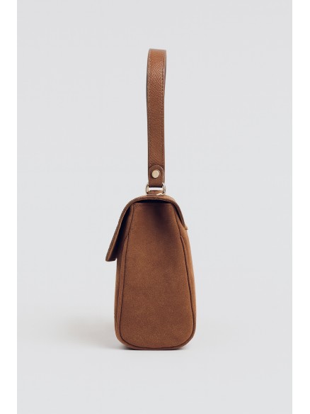 Miękka skóra zamszowa, minimalistyczna forma i detal, który robi robotę. Ta torebka łączy luz z klasą – pasuje do oversize’owej marynarki, jeansów i codziennego biegu między spotkaniami.