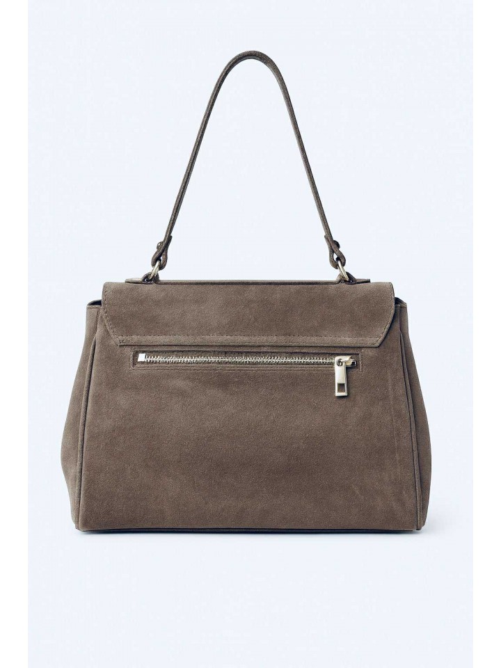 Miękka skóra zamszowa, minimalistyczna forma i detal, który robi robotę. Ta torebka łączy luz z klasą – pasuje do oversize’owej marynarki, jeansów i codziennego biegu między spotkaniami.