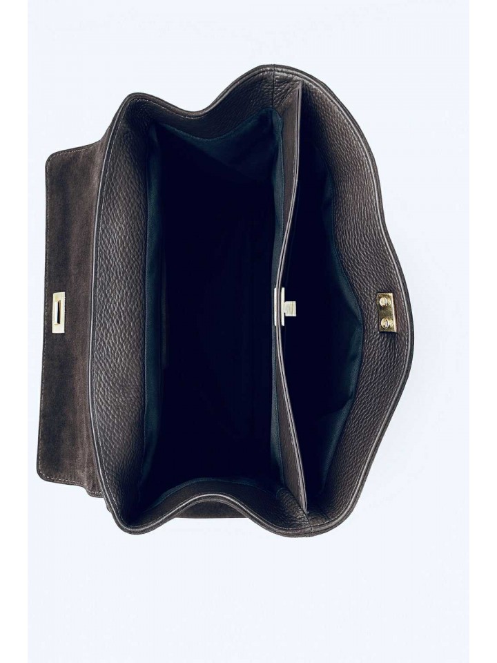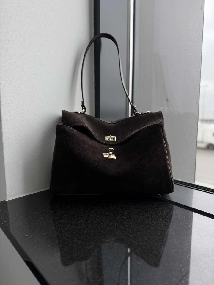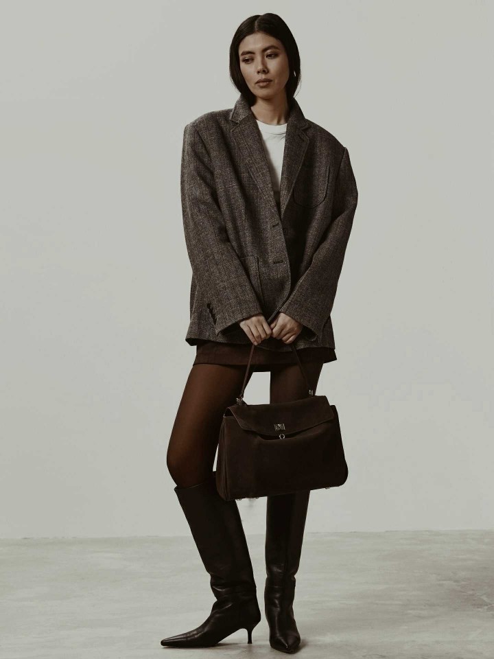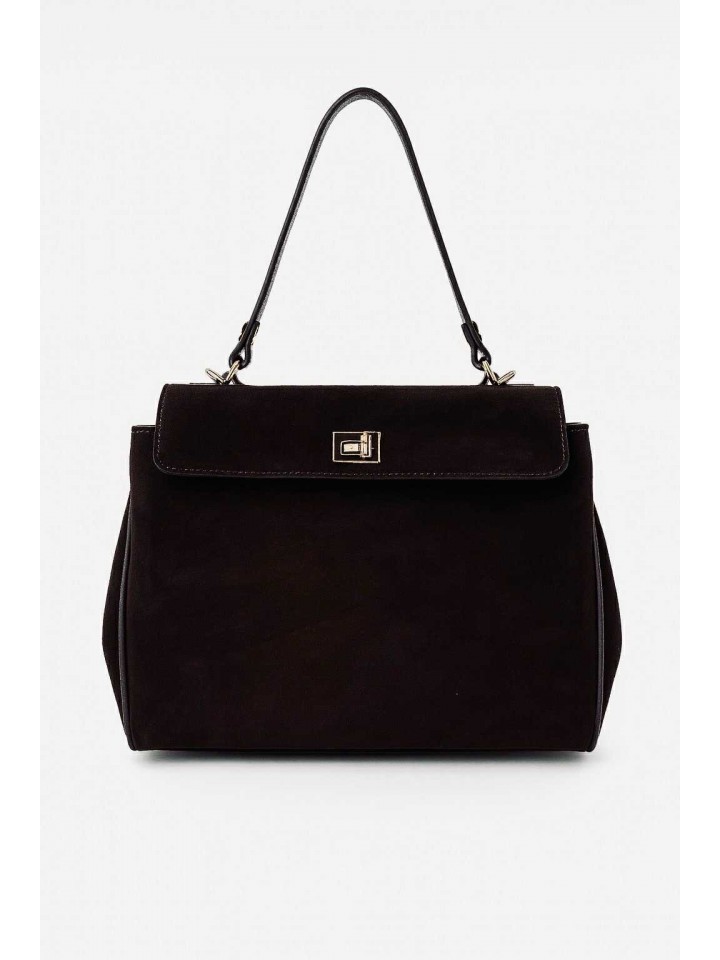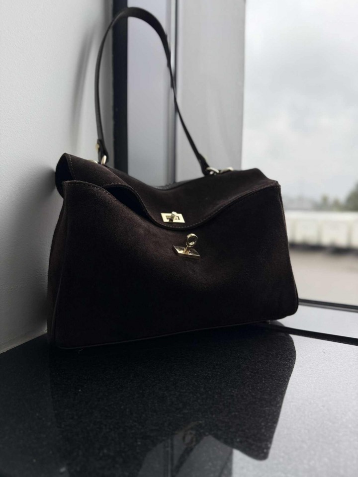Miękka skóra zamszowa, minimalistyczna forma i detal, który robi robotę. Ta torebka łączy luz z klasą – pasuje do oversize’owej marynarki, jeansów i codziennego biegu między spotkaniami.