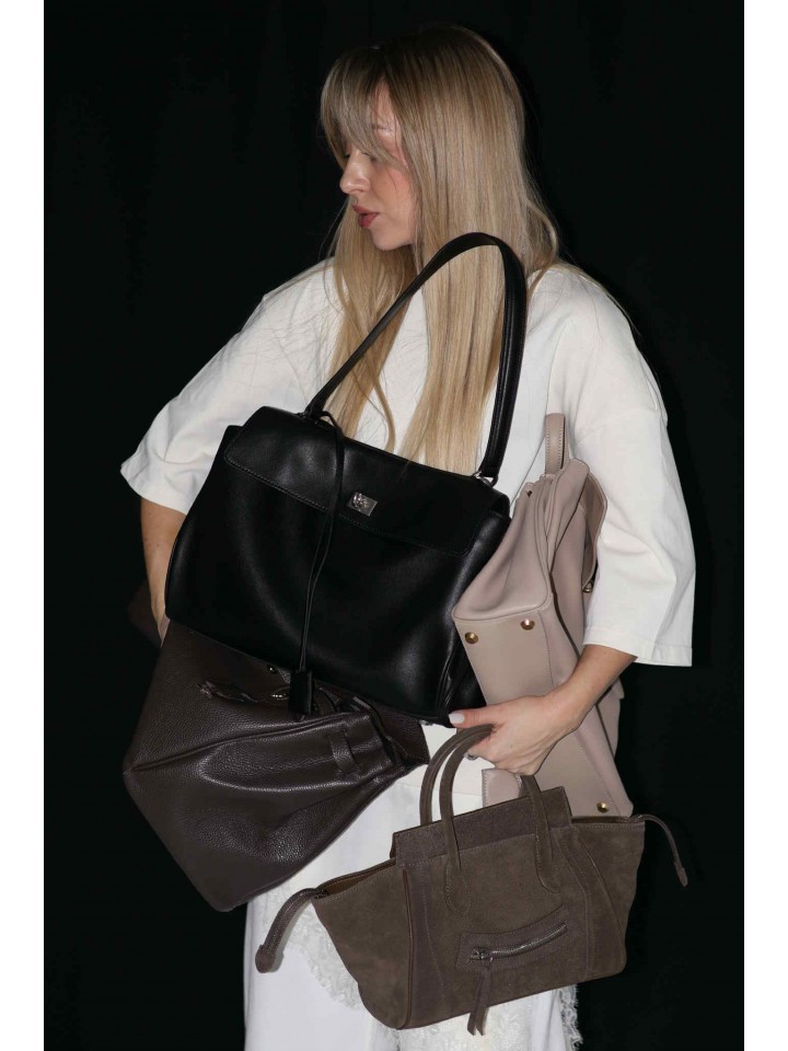 Miękka skóra naturalna, minimalistyczna forma i detal, który robi robotę. Ta torebka łączy luz z klasą – pasuje do oversize’owej marynarki, jeansów i codziennego biegu między spotkaniami.