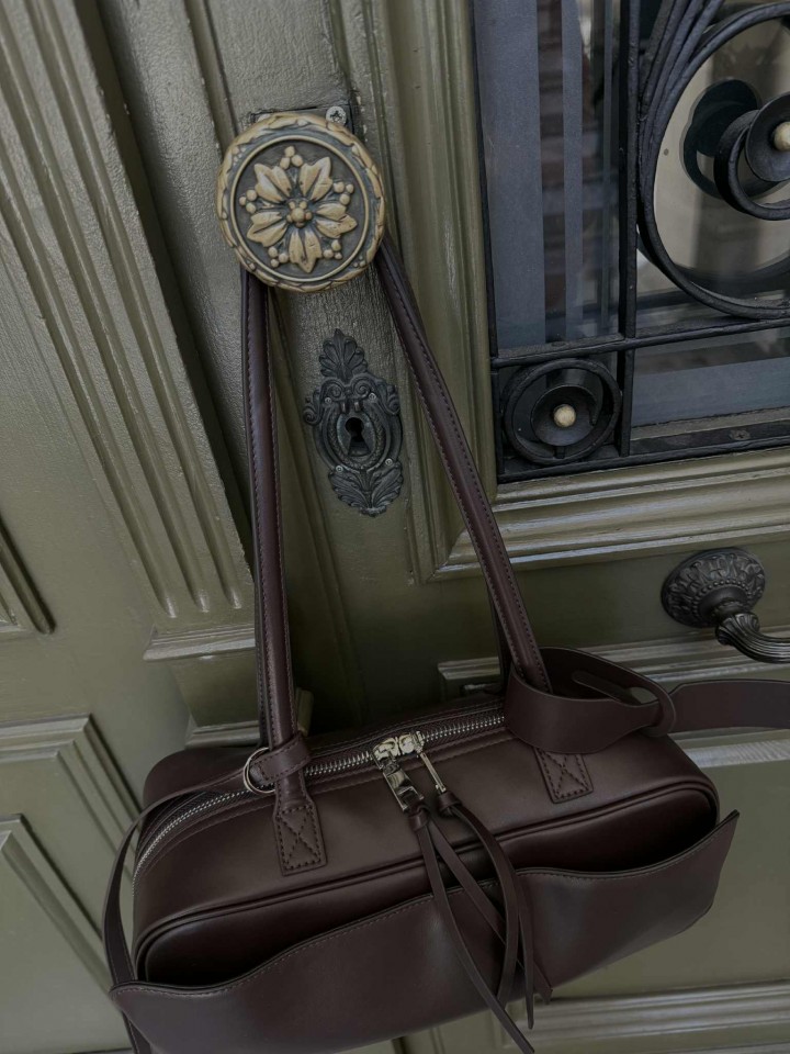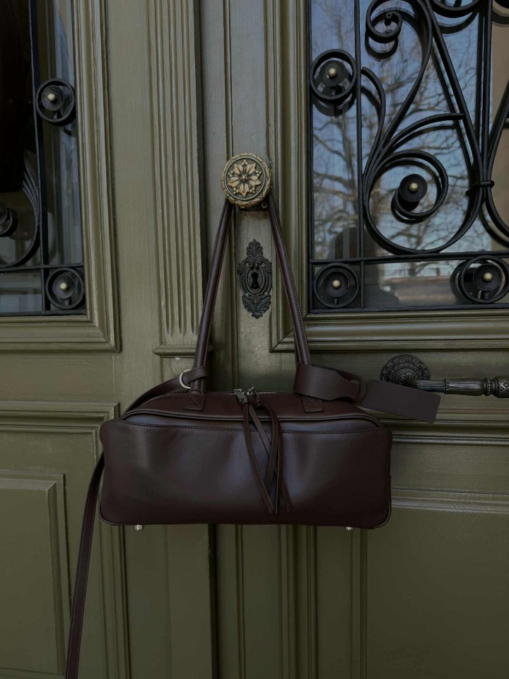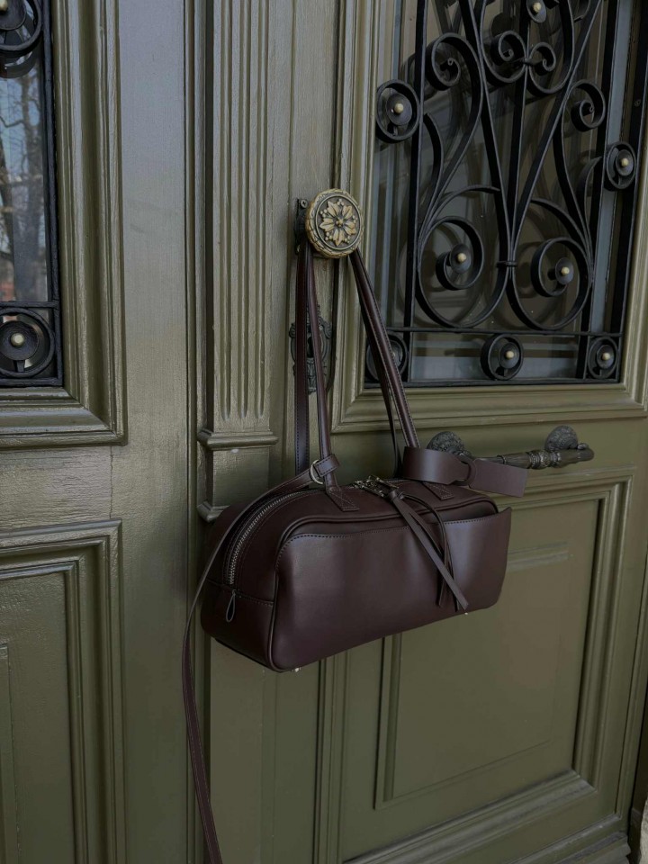 Kolor: czekoladowy brąz, srebrne okucia