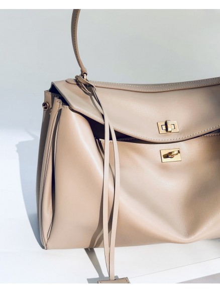 Miękka skóra naturalna, minimalistyczna forma i detal, który robi robotę. Ta torebka łączy luz z klasą – pasuje do oversize’owej marynarki, jeansów i codziennego biegu między spotkaniami.