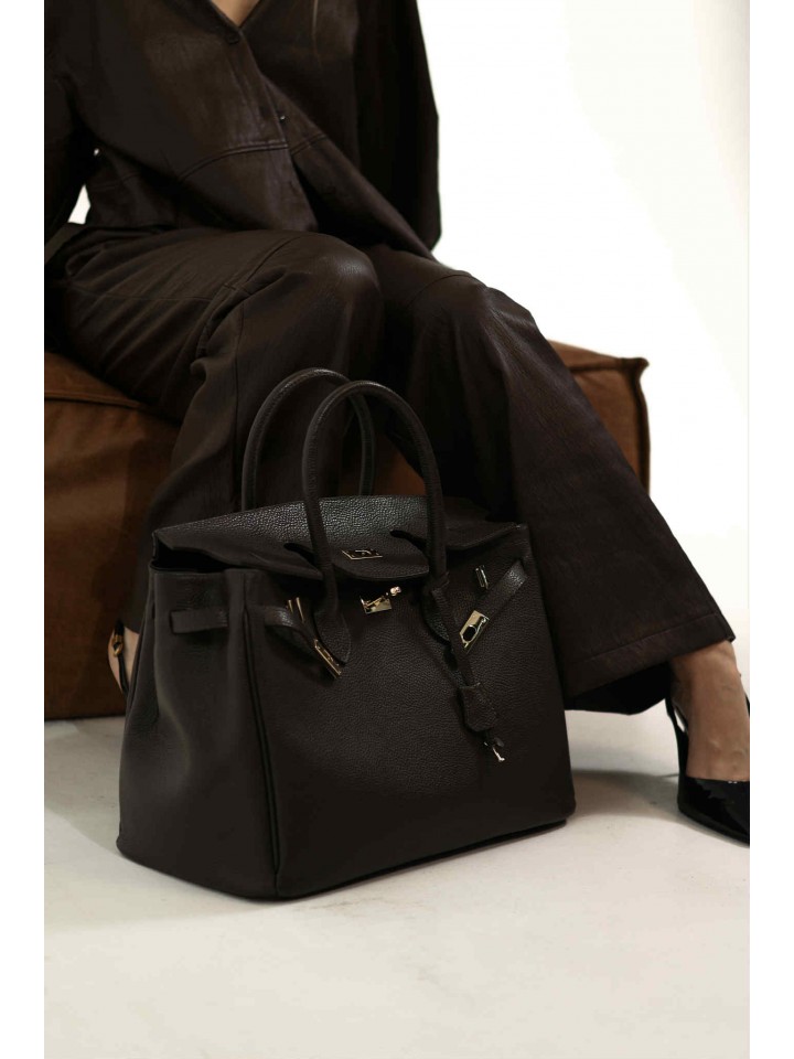 Model wykonany z wysokiej jakości włoskiej skóry naturalnej, która zachowuje piękny wygląd i strukturę przez lata. To torebka z włoskiej skóry, dopracowana w każdym detalu — od proporcji po subtelne złote wykończenia. Sztywna konstrukcja sprawia, że jest to klasyczna torebka skórzana, która zawsze prezentuje się elegancko.
