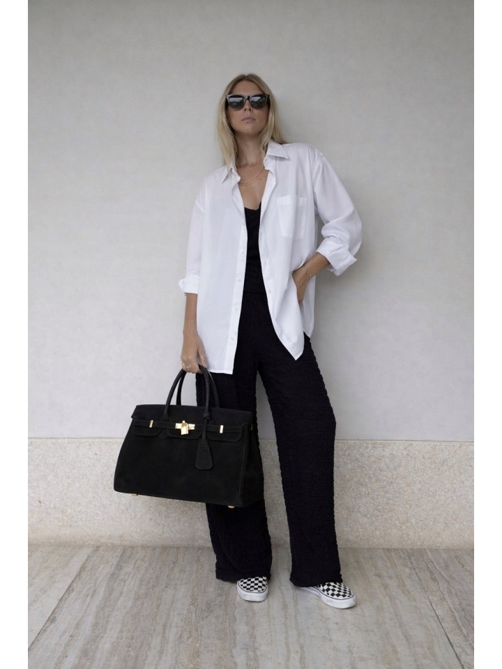 London to elegancka torebka wykonana z wysokiej jakości włoskiej skóry naturalnej zamszowej. Jej wyrazista, minimalistyczna forma i dopracowane proporcje nadają jej ponadczasowy charakter, który pozostaje odporny na zmieniające się trendy.